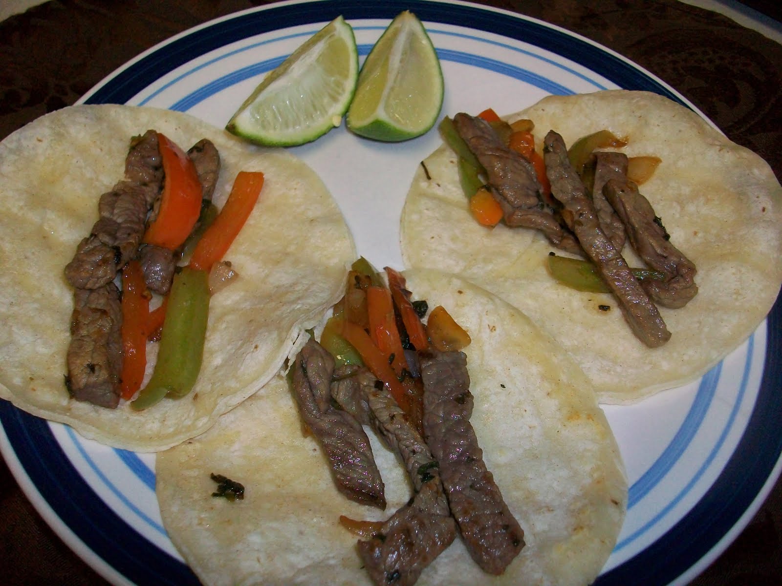 Once the beef is done add back in the peppers for a few minutes to let the flavors combine. Serve with some lime wedges, sour cream, guacamole, etc.